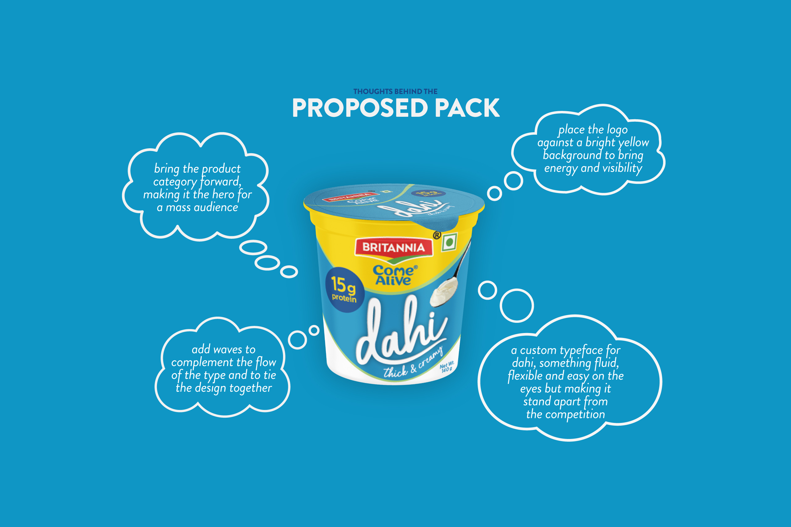 Britannia approached us to rethink their existing Come Alive range, beginning with the Dahi packaging.