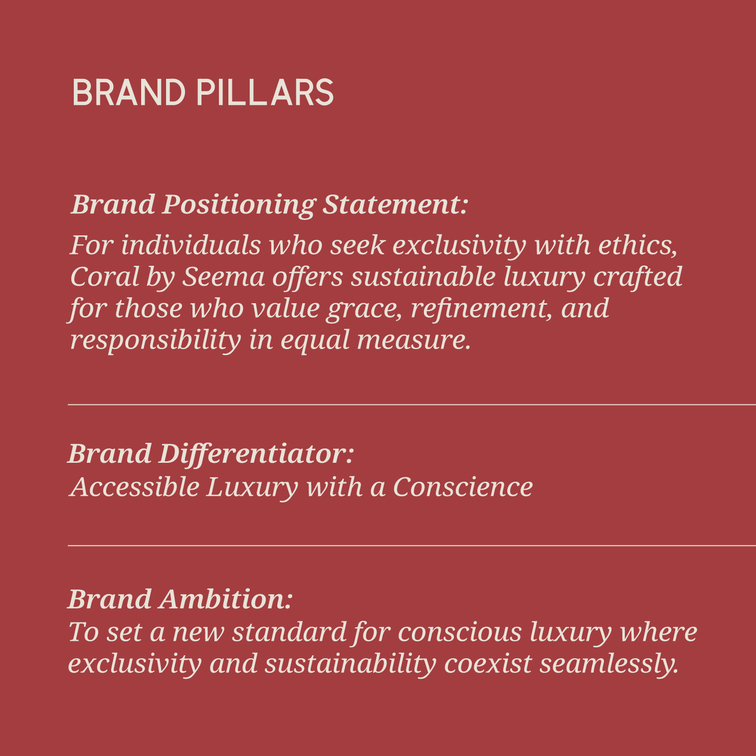 The objective was to articulate this clearly, shaping Coral by Seema into a conscious luxury label with a refined identity, one capable of resonating with a global audience while remaining deeply rooted in its philosophy.