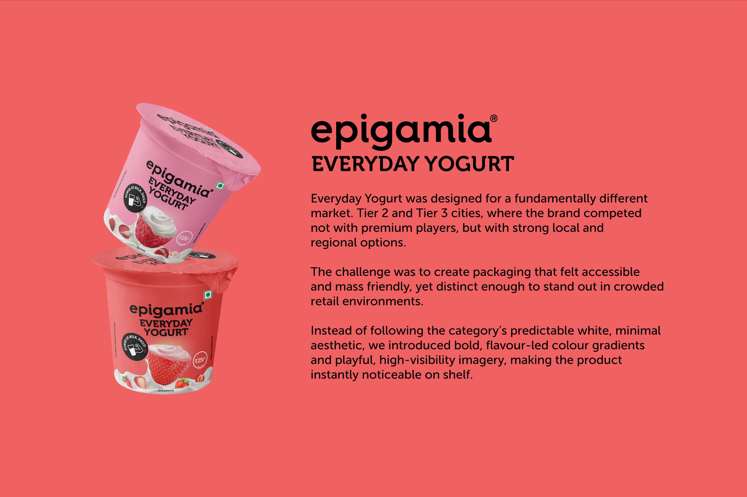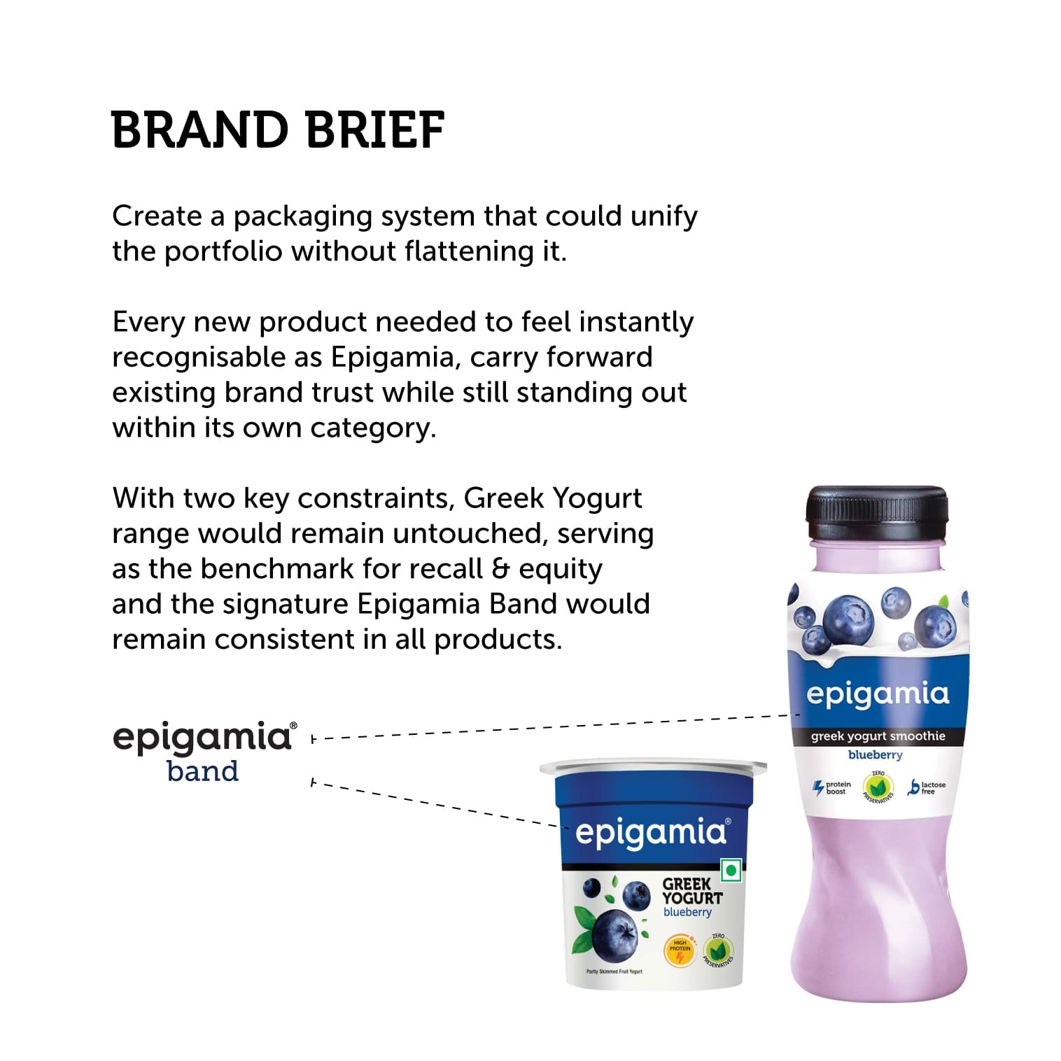 Every product needed to feel instantly recognisable as Epigamia, carry forward existing brand equity, and still stand out within its own category.