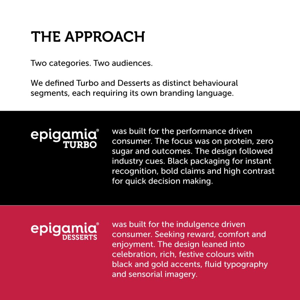 The packaging now builds strong recall across categories while allowing each range to clearly communicate to its audience. Turbo drives performance-led decisions, Desserts creates indulgent appeal, and Everyday Yogurt ensures visibility and accessibility in mass markets.