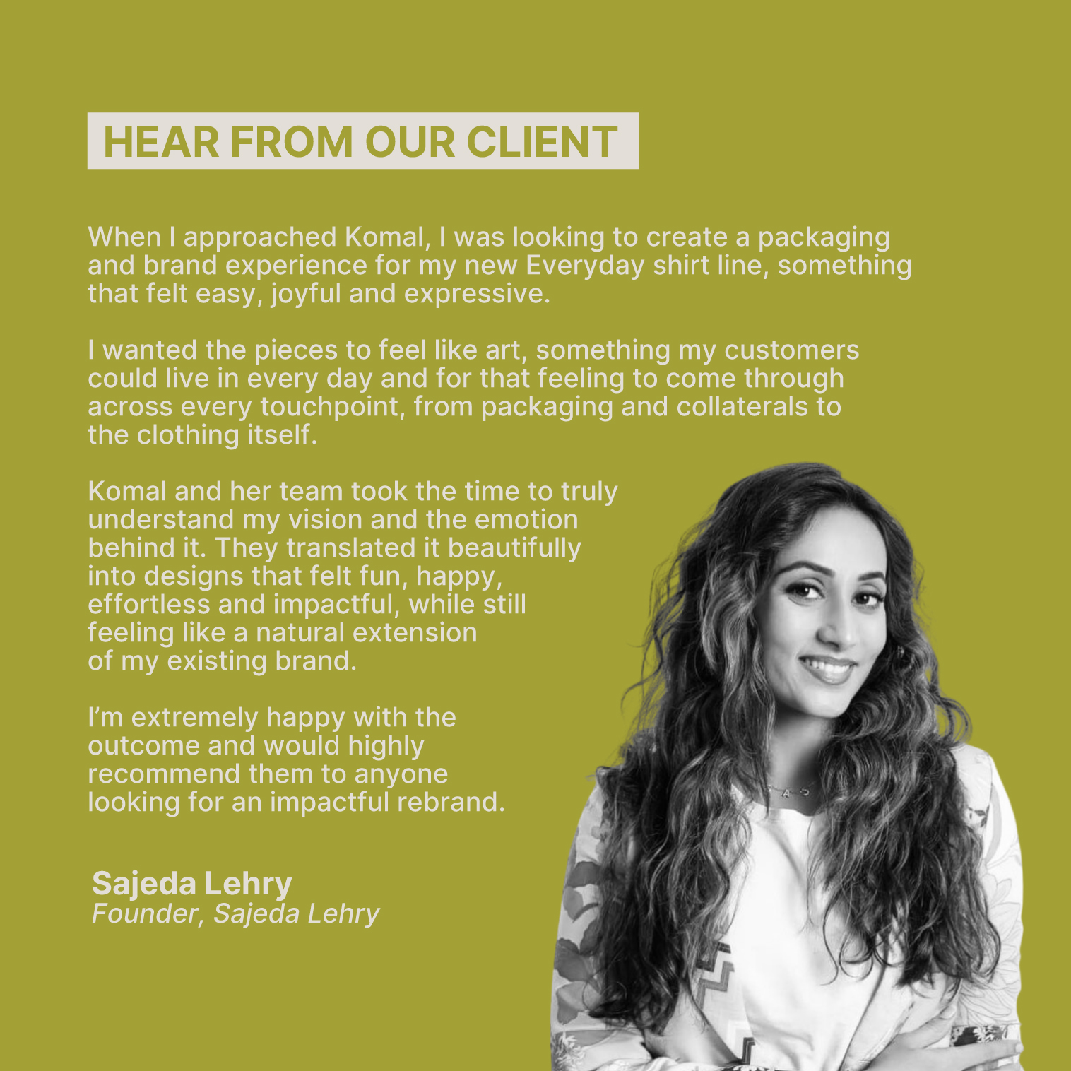 We focused on retaining the core visual language of Sajeda Lehry while layering in moments of lightness, through expressive fit identities, playful copy and tactile packaging details that felt joyful yet considered. The approach was not to make the brand casual, but to make it feel more alive and accessible in an everyday context.